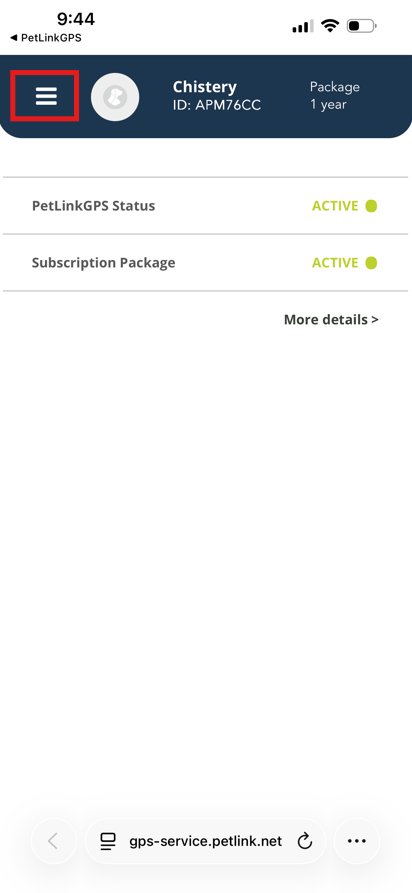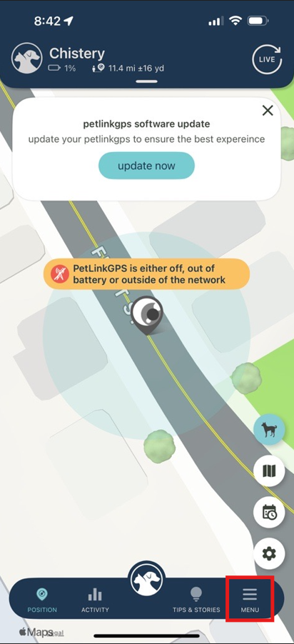 - Log in to your PetLinkGPS app